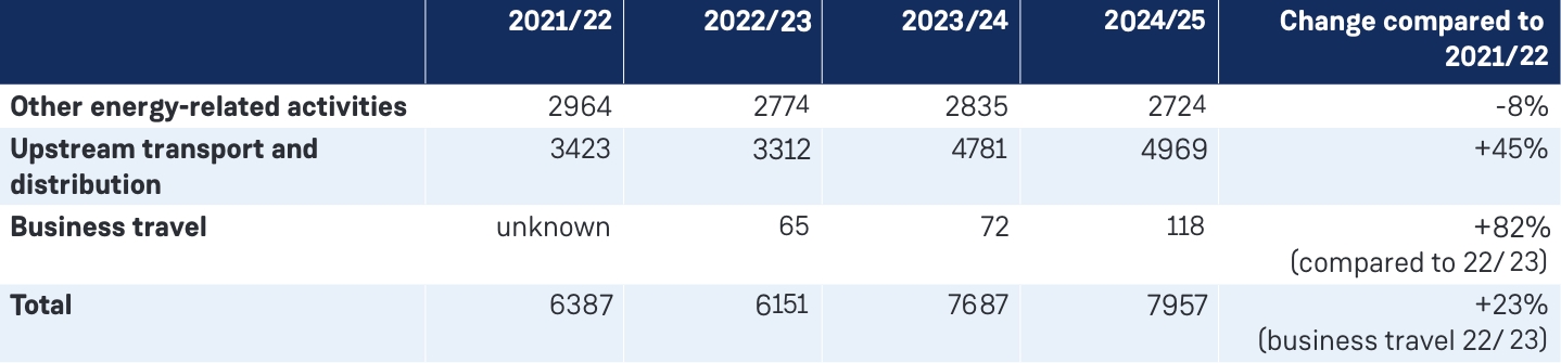 In addition to our own consumption, we also look at the consumption of our partners in the supply chain, such as third-party transport, purchased goods, and business travel. Third-party transport and business travel have increased substantially. The increase in upstream transport and distribution from 2024-2025 compared to 2023-2024 can be explained by the outsourcing of part of our fleet to an external partner.