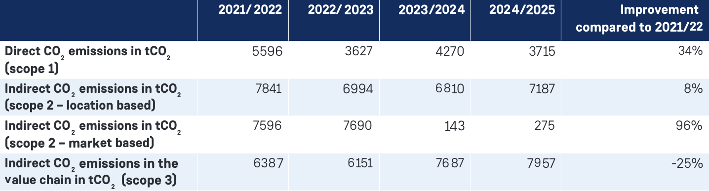 The quality of our CO₂ data has steadily improved over the years. Although the differences compared to 2021-2022 may not be fully representative, the data from 2023-2024 and 2024-2025 years provides a more complete and reliable picture, giving us improved insight into our progress and the impact of our sustainability initiatives.